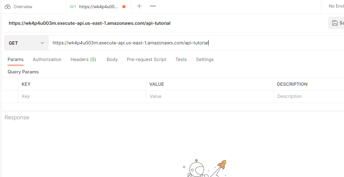 Next, paste in the Invoke URL of your API, plus the route of the endpoint you would like to test. Since in this tutorial we only have one route, that is the one we will use.