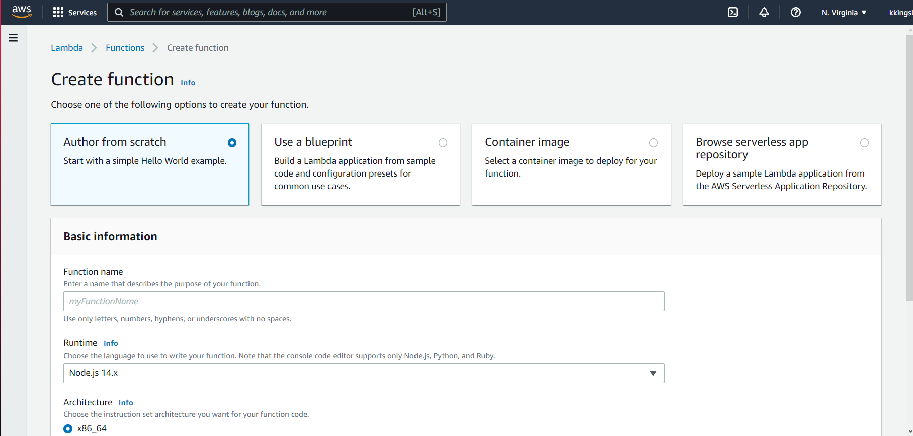 The first thing you'll want to do is navigate to AWS Lambda and click "Create Function"